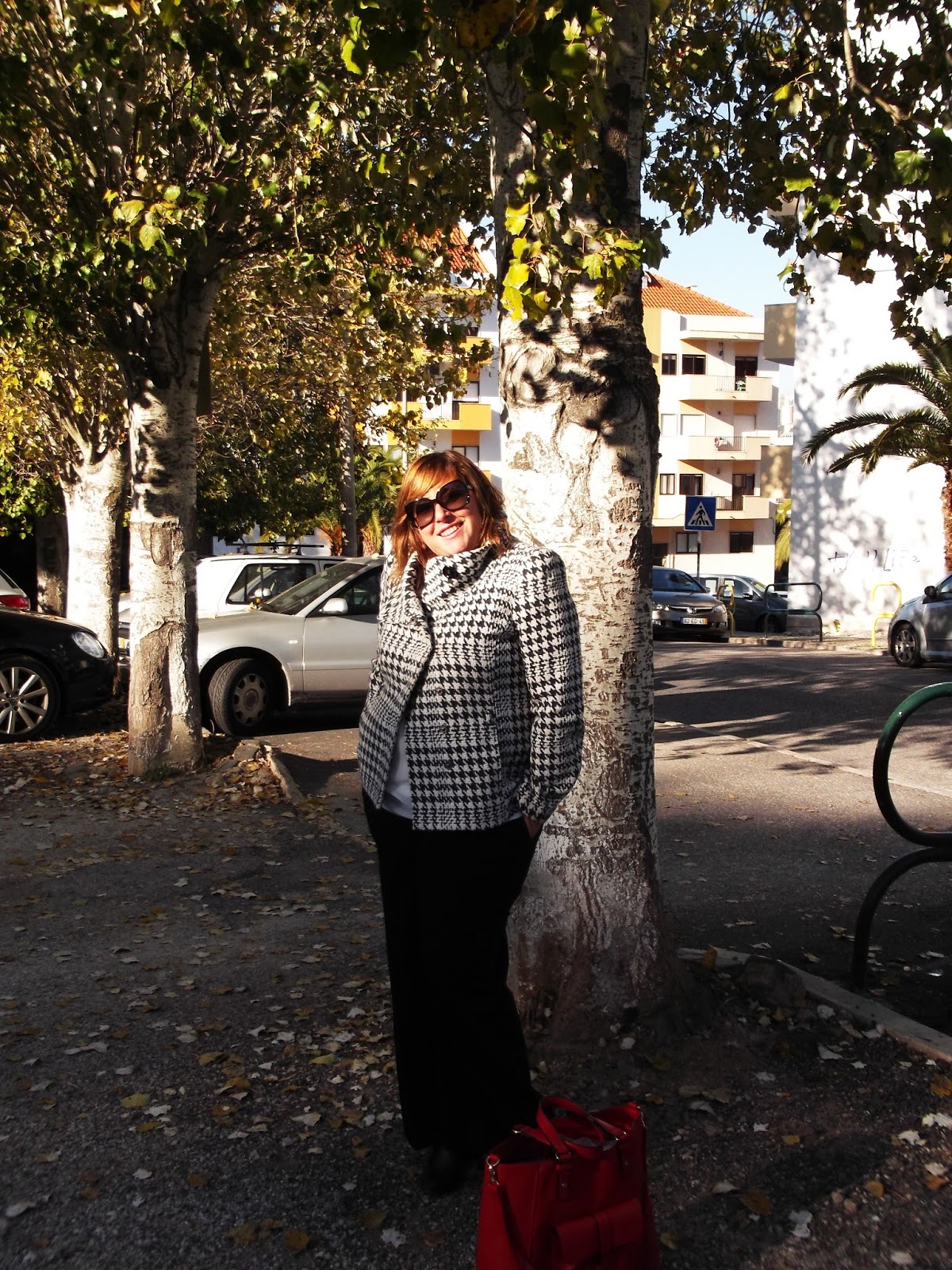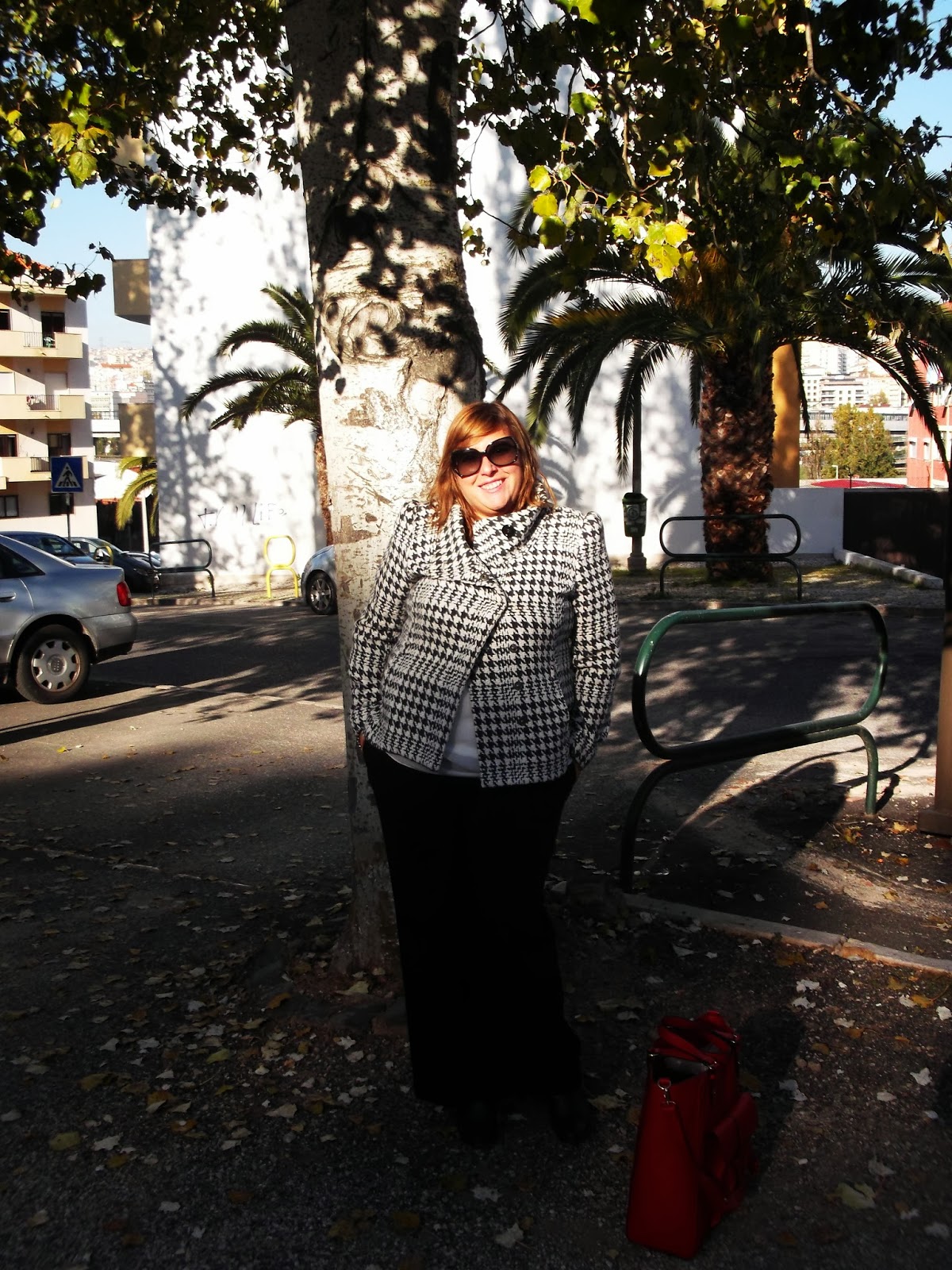 Foi o que aconteceu no look de hoje: a elegância de umas calças pretas clássicas (um básico de qualquer closet), o contraste com uma blusa branca e a terminar o padrão intemporal do casaco.
