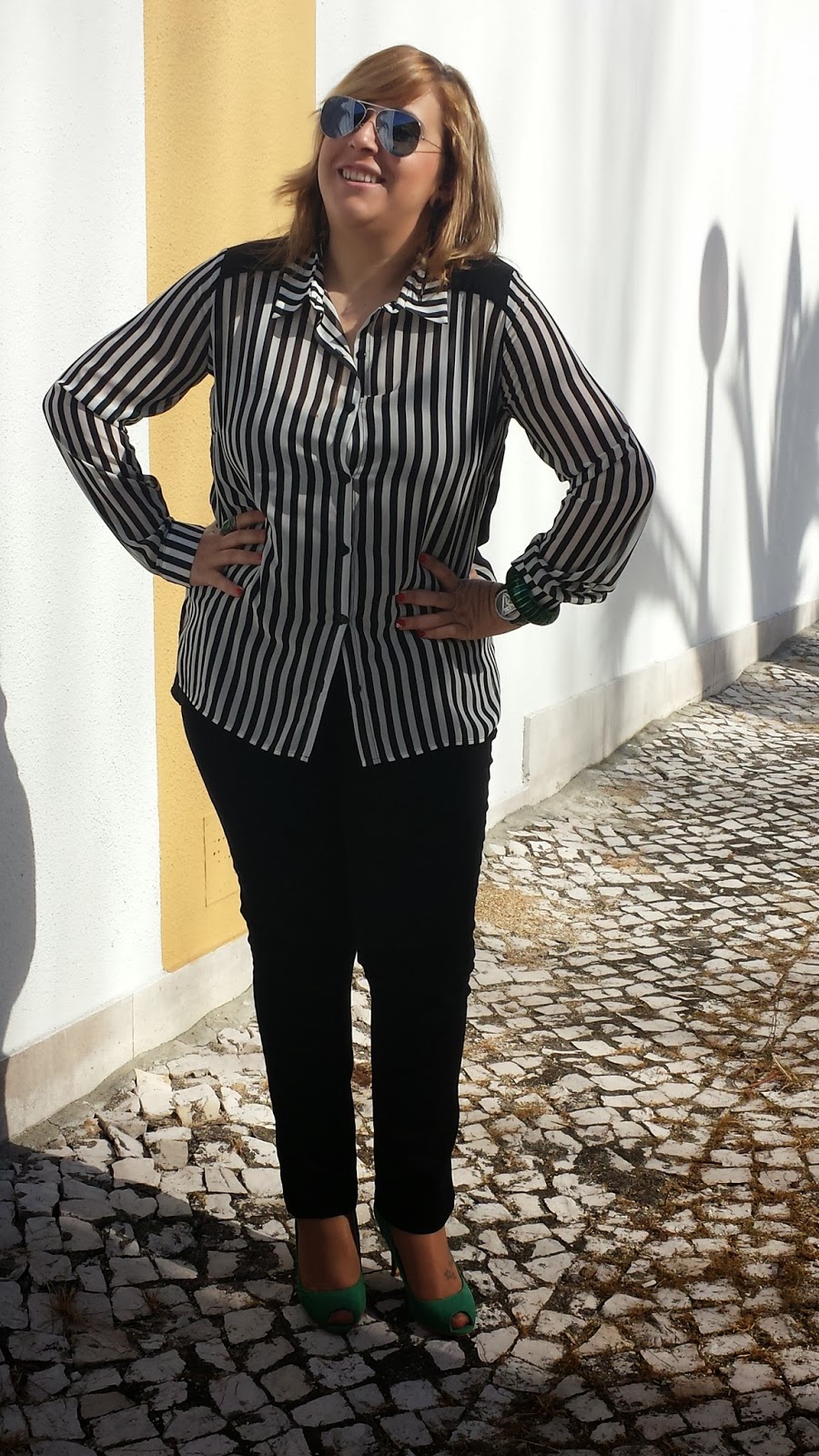 Não sou moça de grandes padrões mas riscas verticais agradam-me. Fazem-me parecer mais esguia e elegante e o preto e branco têm tudo a ver comigo.